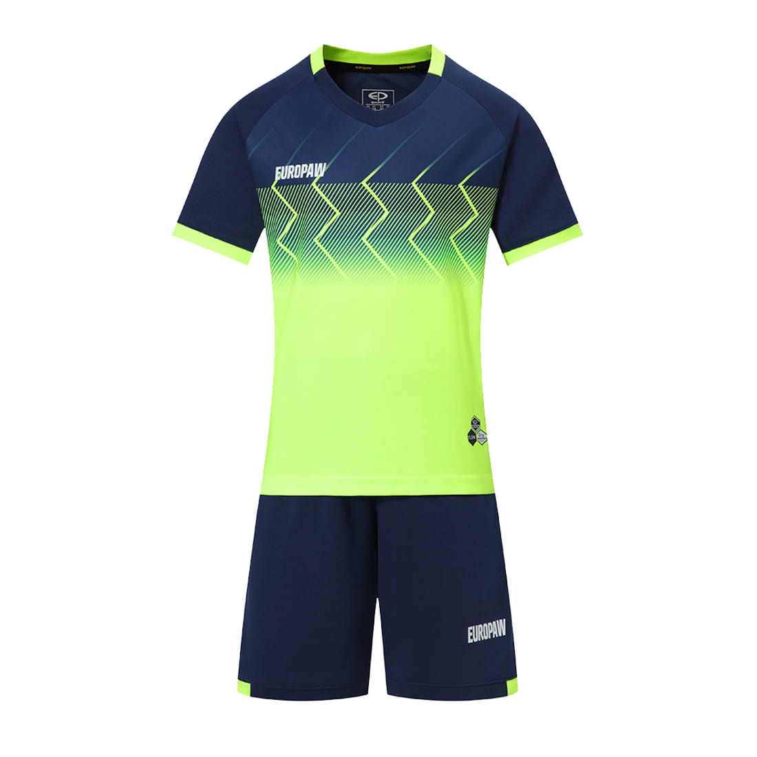Футбольна форма Europaw 029 SLAVA у яскраво-салатовій гамі з темно-синiми елементами — сучасний комплект командної екіпіровки для тренувань, офіційних матчів, занять у секціях та ДЮСШ. Футболка і шорти виготовлені з легкої еластичної тканини, що добре вентилюється, відводить вологу та швидко висихає, забезпечуючи комфорт навіть під час інтенсивних навантажень і в спекотну погоду.