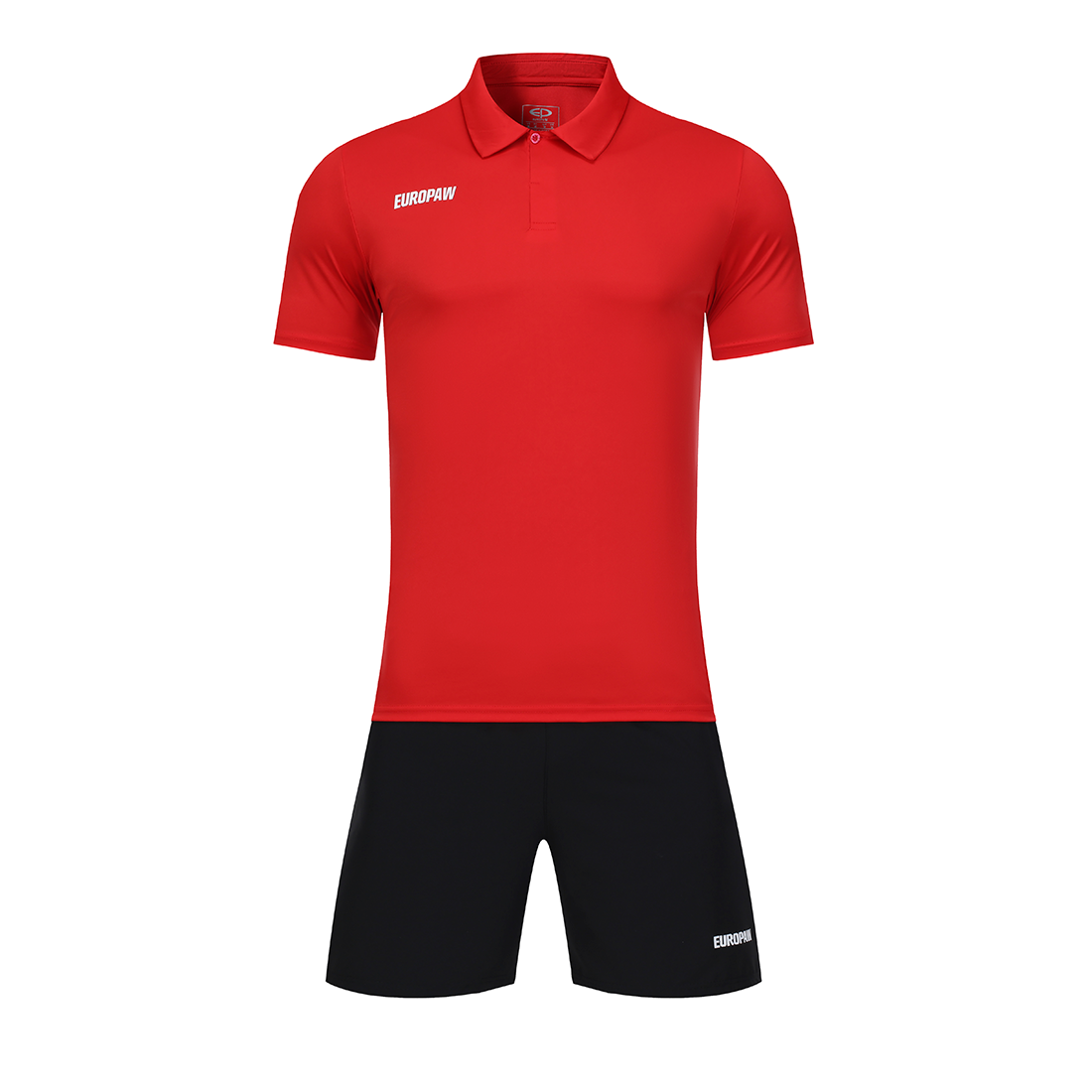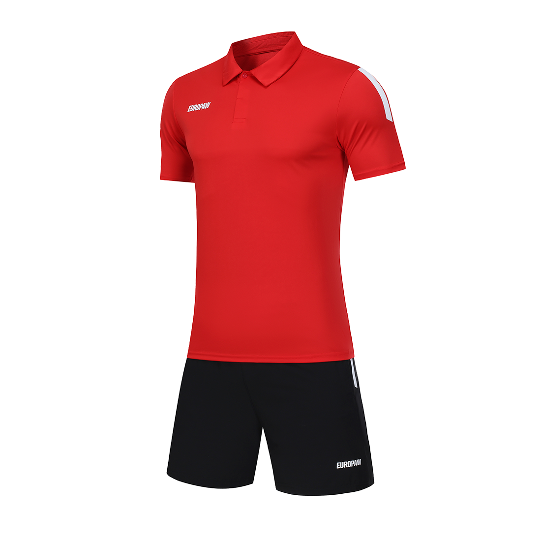Комплект літній футболка поло та шорти Europaw S-line червоний — ідеальний вибір для футбольних команд та спортсменів. Професійний дизайн і високоякісні матеріали роблять цей комплект чудовим рішенням для парадів, офіційних заходів, тренувань та повсякденного використання у теплу пору року. Легка, дихаюча тканина забезпечує комфорт і свободу рухів під час носіння.