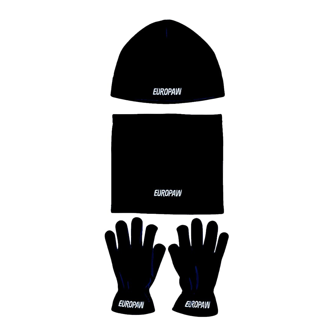 Зимовий комплект Europaw для дітей — шапка + баф + рукавички, чорний (розмір XS–S)